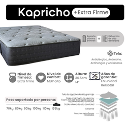 El Kapricho Extra Firme es nuestro colchón tope de línea: extra firme en su núcleo, estable y con un nivel de confort excepcional gracias a su acolchado premium.