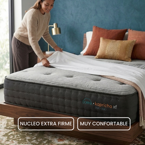 El Kapricho Extra Firme es nuestro colchon tope de linea: extra firme en su nucleo, estable y con un nivel de confort excepcional gracias a su acolchado premium.